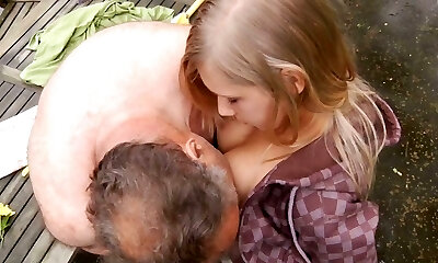 Fatt and ugly oldman does a naive teenager blondie