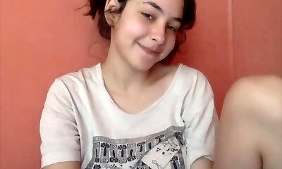 19 year senior busty webcam girl with innocent face touches her big natural ti