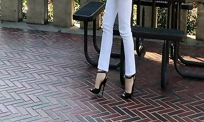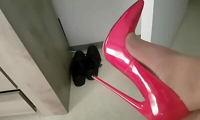 tsubasa tamaki grésillant dans ses hautes pantoufles à talons hauts