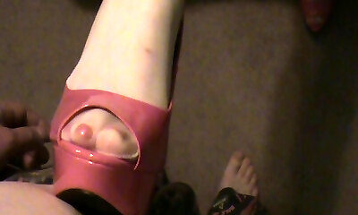 wifey dans un bas rose harnais rose et de hauts talons aiguilles