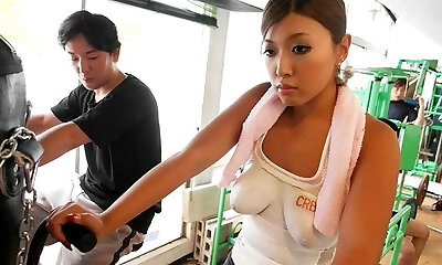 un gros milf chinois ravage un gros plan dans la salle de gym