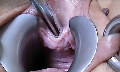 Extreme Cervix Playing with Insertion Metal Chain in Uterus
