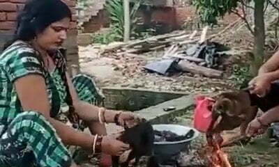 Asian hos pee in river