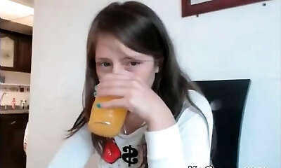 Teen milks front the webcam
